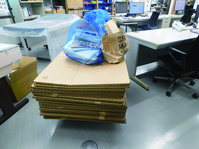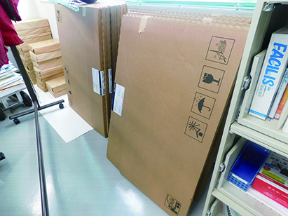 使用する備品や材料を梱包していた段ボールは定期的にまとめて処分します。