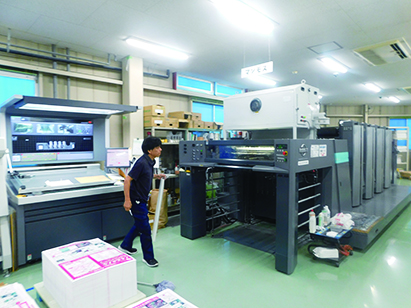 大型の印刷機械は紙粉やインク汚れを上から下まで丁寧に取り除いて綺麗な製品ができるようにします。