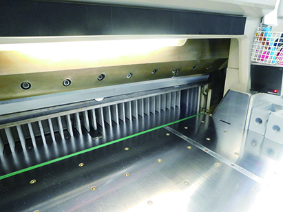 断裁機(紙を切る機械)など直接印刷用紙に触れる部分は特に注意して清掃、ピカピカにします。